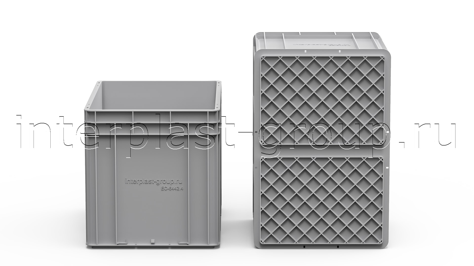 Евроконтейнер закрытые ручки/усиленное дно (серый), 600x400x420 мм