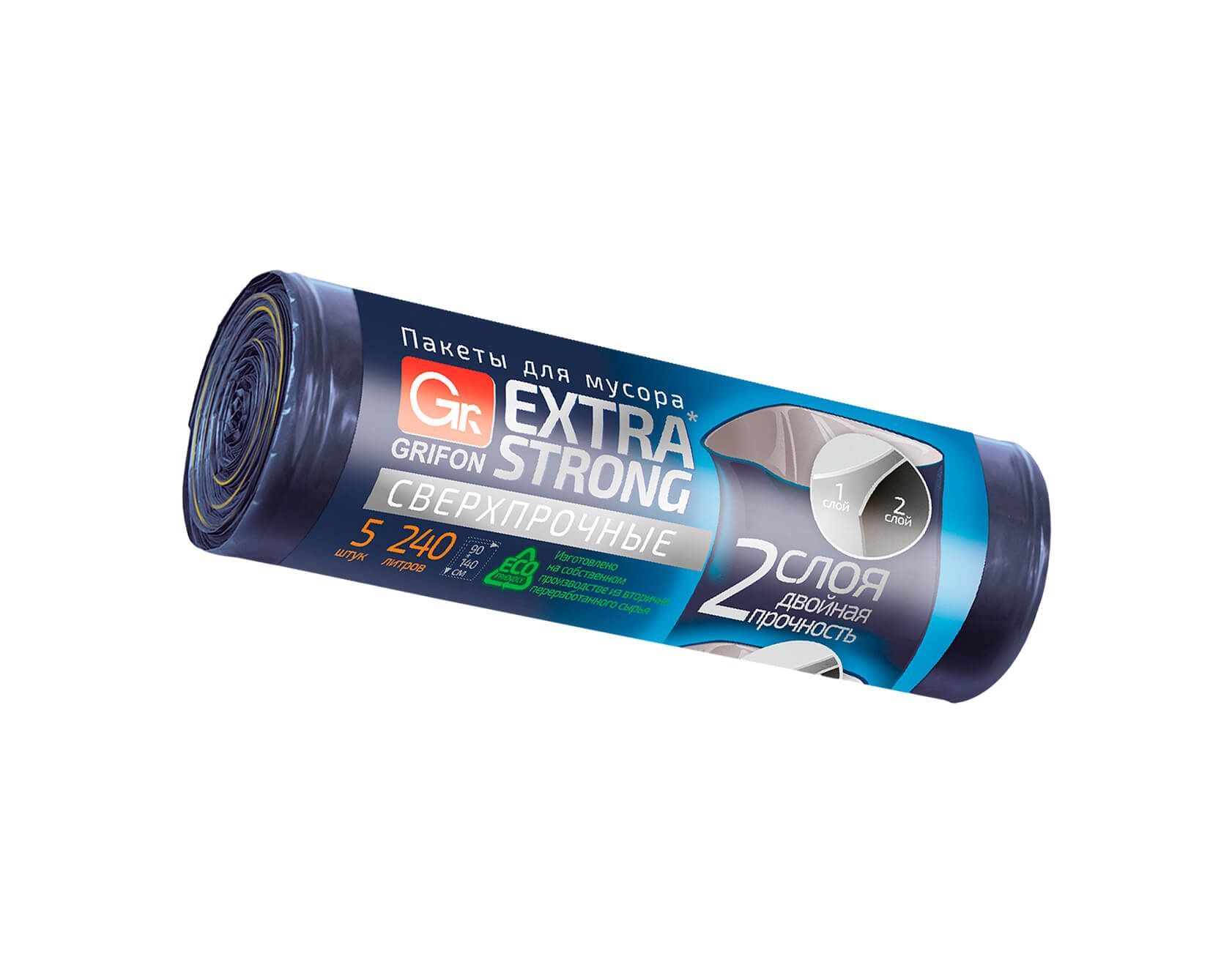 Готовьтесь к самой тяжелой работе с мешками для мусора GRIFON EXTRA STRONG! В этом рулоне вас ждут 5 двухслойных синих мешков объемом 240 литров каждый, изготовленных из высококачественного полиэтилена высокой плотности (ПВД) толщиной 50 микрон.