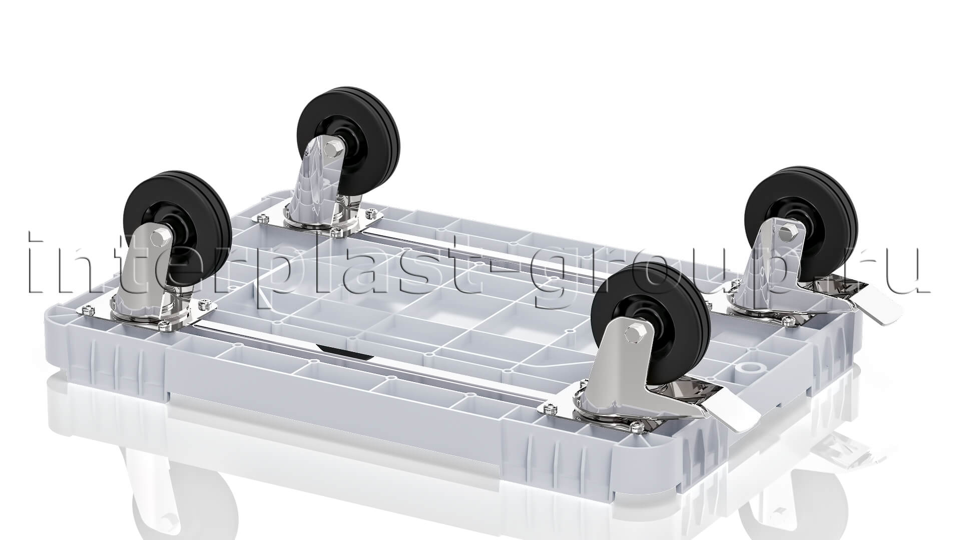 Тележка пластиковая сплошная 2 колеса с тормозом усиленная серая