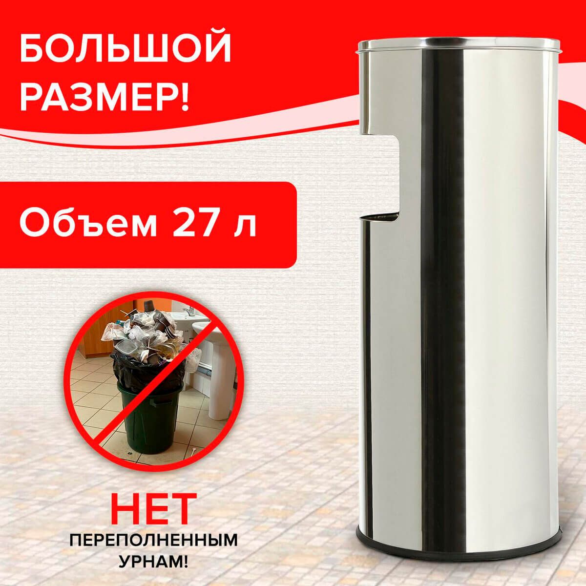 Урна с пепельницей 27 л, нержавеющая сталь, зеркальная, LAIMA PROFESSIONAL