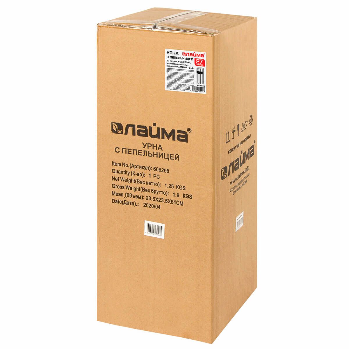Урна с пепельницей 27 л, нержавеющая сталь, зеркальная, LAIMA PROFESSIONAL в Томске